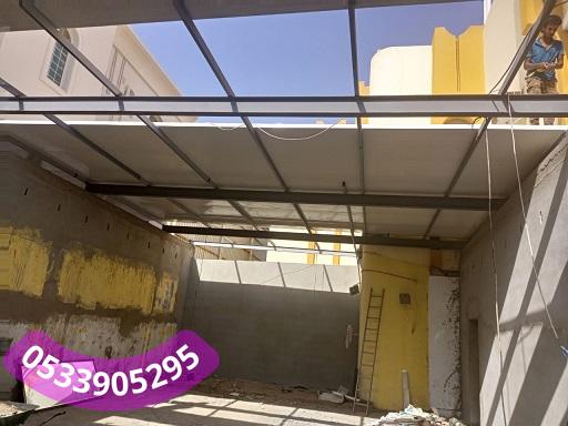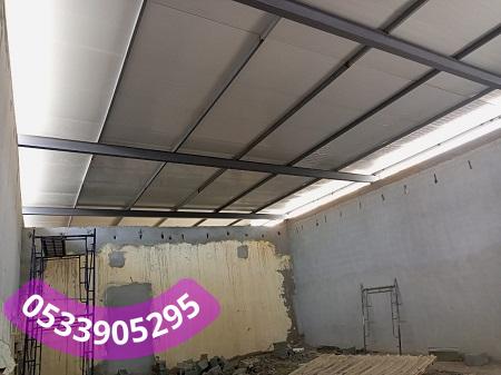 - تم تركيب سقف الغرفة الذي اخترناه بنفس مواصفات حوائط الغرفة مما يعطي شكلاً أفضل ويعطي عزلًا حراريًا أفضل للغرفة من الصاج المموج فقط، حيث يتم تثبيت السقف بالجدران بواسطة زوايا الألمنيوم 5 * 5 سم والمسامير اللازمة لذلك.